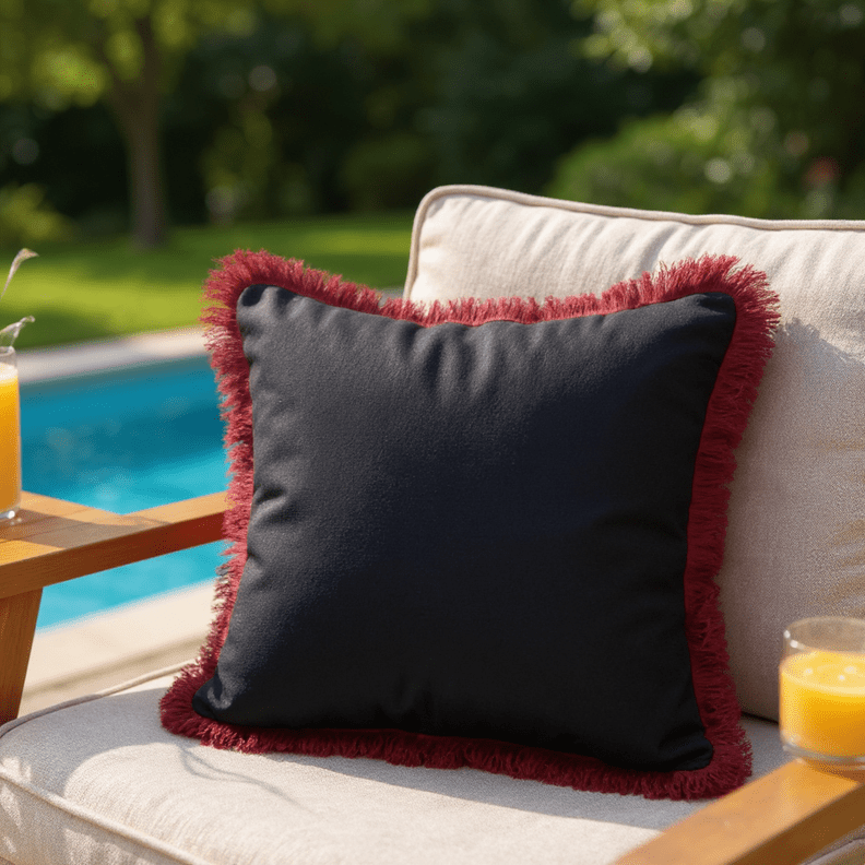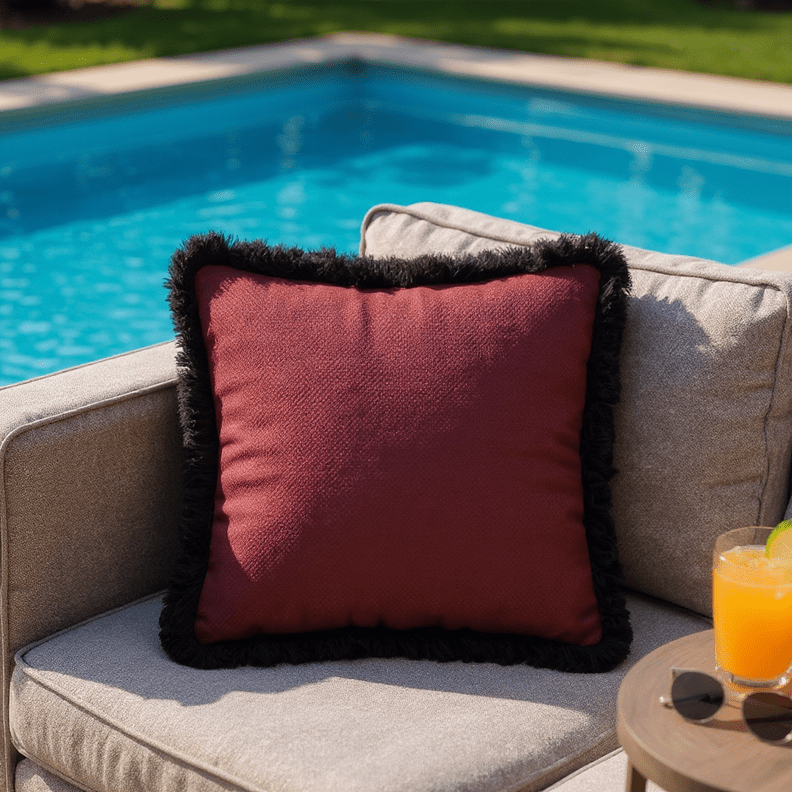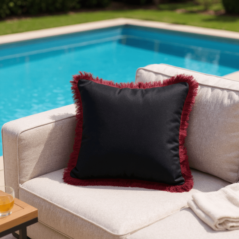 Garnet & Black Carolina Fringe Pillow | Sunbrella Performance Fabric | Garnet & Black Collection - RSH Decor