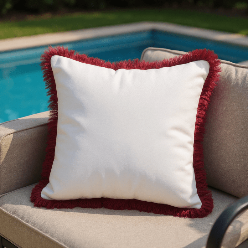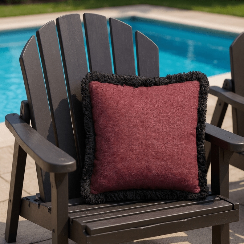 Garnet & Black Carolina Fringe Pillow | Sunbrella Performance Fabric | Garnet & Black Collection