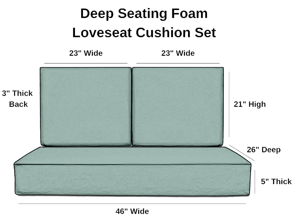 RSH DECOR: Sunbrella Deep Seating Foam Loveseat Cushion Set | 46” x 26” Loveseat | Performance Fabric | Outdoor Foam Settee and Back Cushions for Patio Furniture | Stanton Lagoon - Made in USA