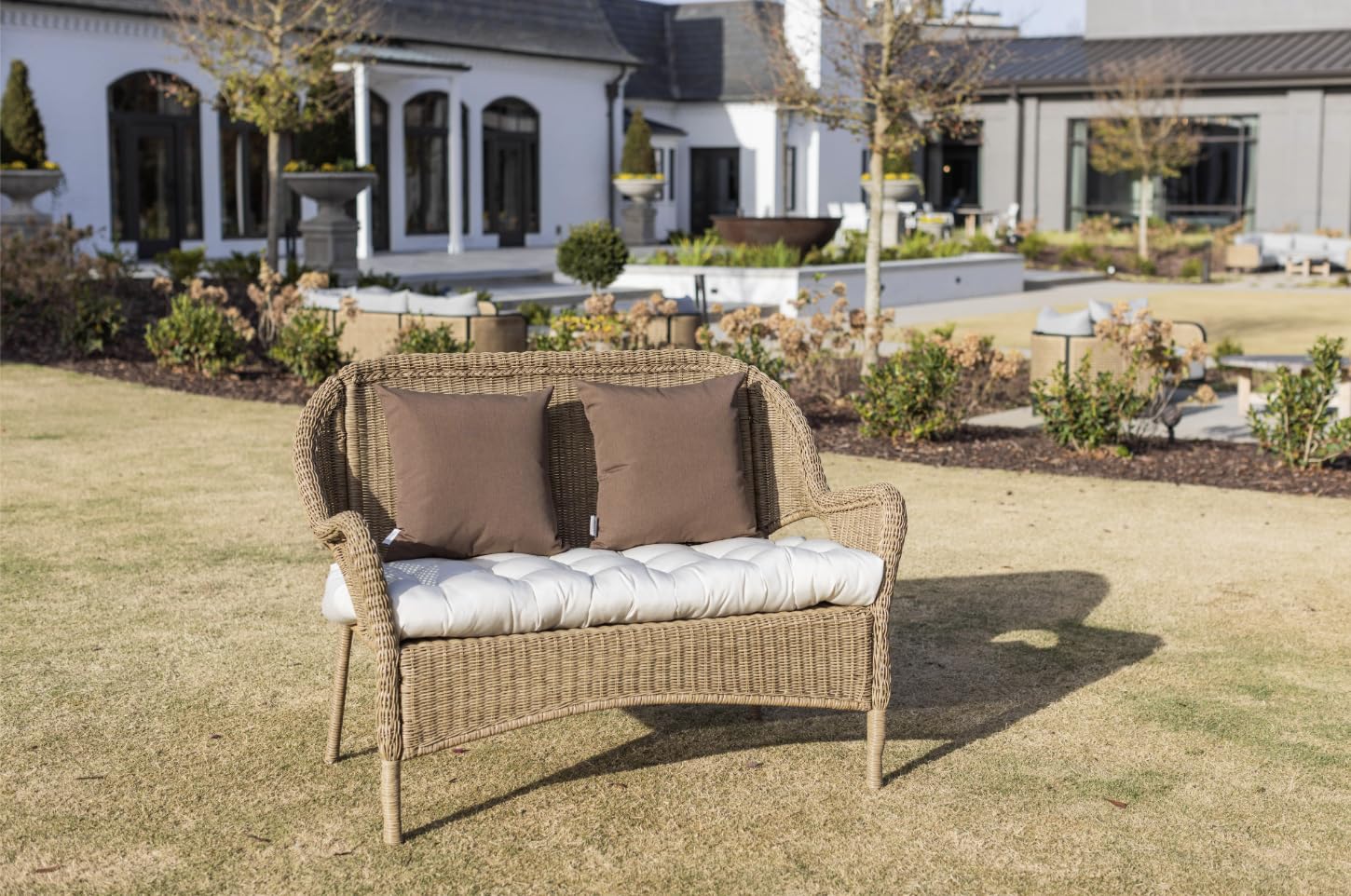 RSH DECOR: Sunbrella Play Square Throw Pillows Set of 4 | 24" x 24" | Water and Fade-Resistant Performance Fabric | Outdoor Pillow Covers with Down-Alternative Inserts | Play Mocha