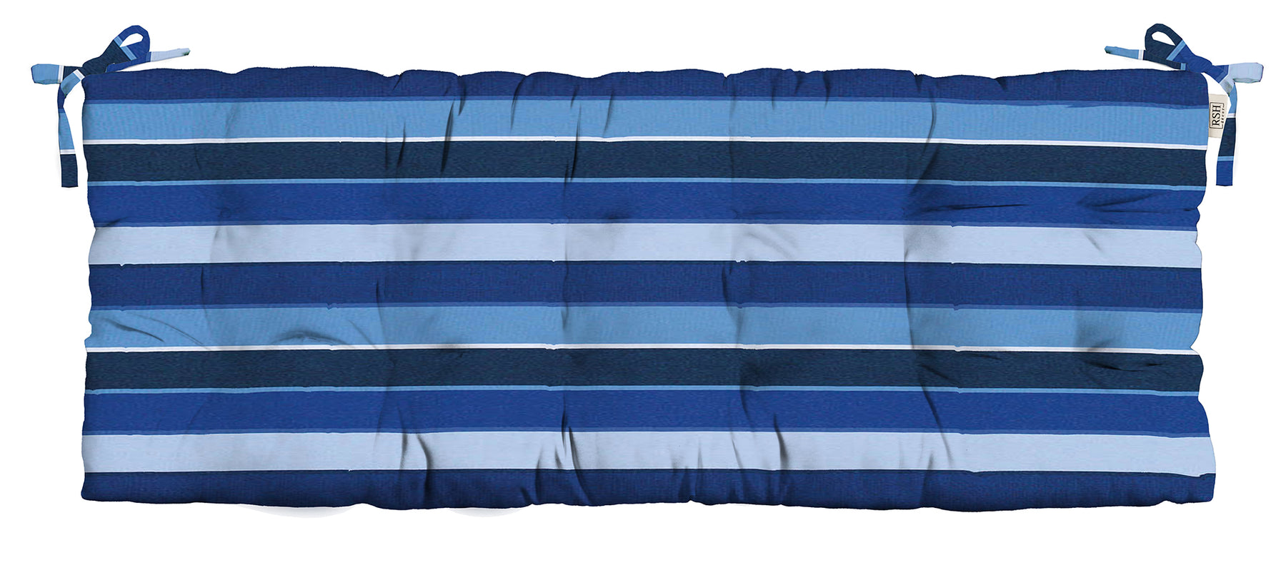 Sunbrella Blue & Green Stripes Tufted Bench Cushion with Ties - RSH Decor