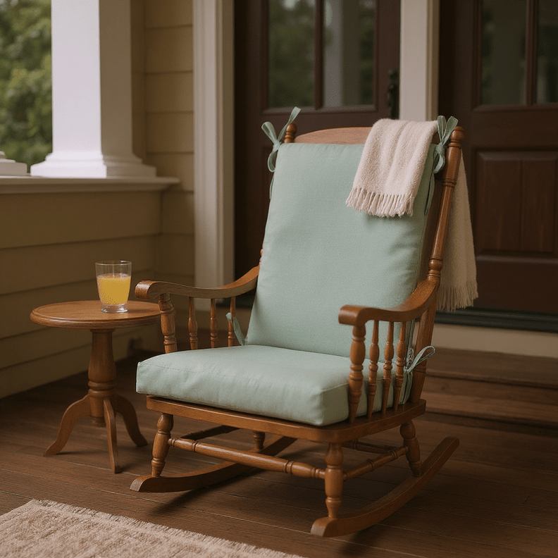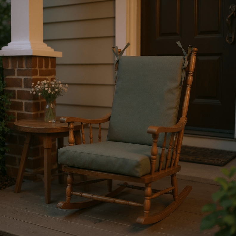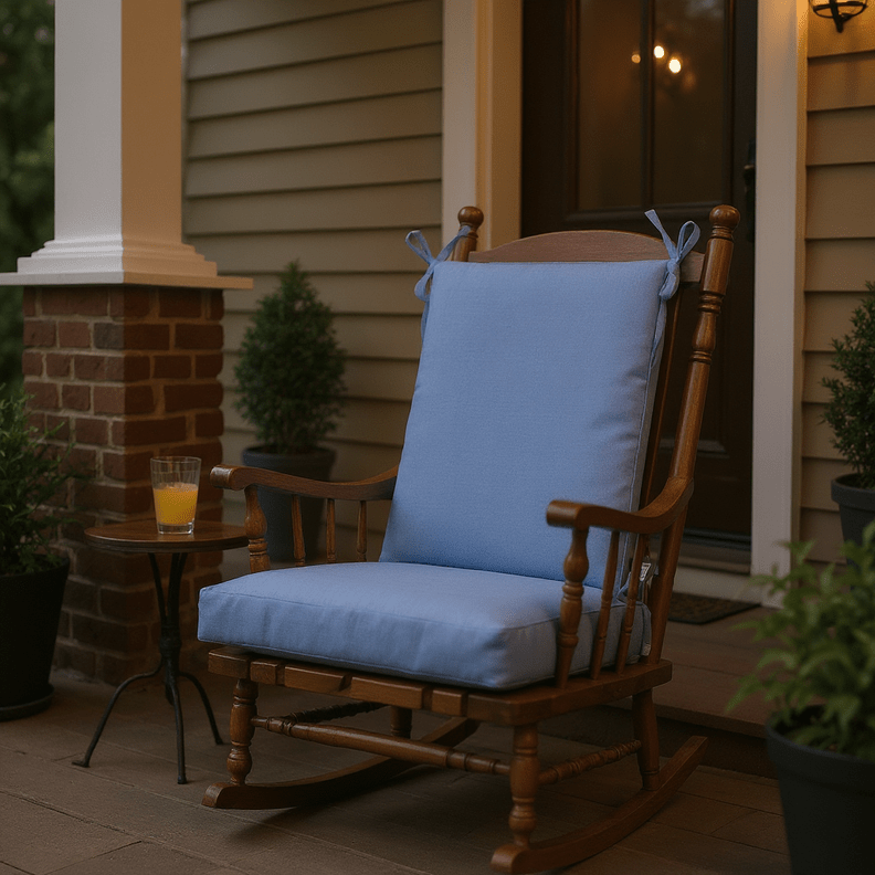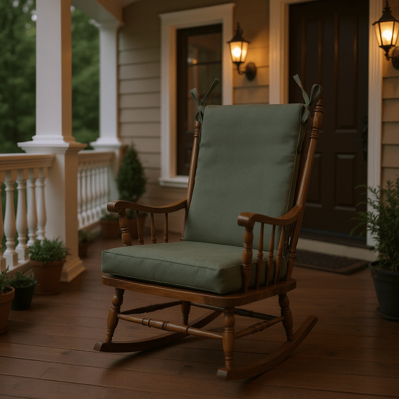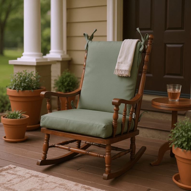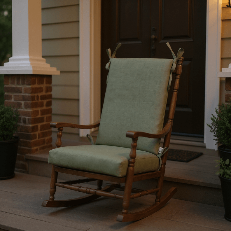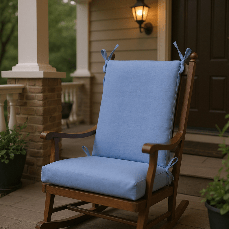 LASTING DESIGN: This rocking chair cushion is perfect for refreshing your porch or patio and can be used either indoors or outdoors. This comes as two separate pieces, one back cushion with matching ties and one seat cushion with matching ties.