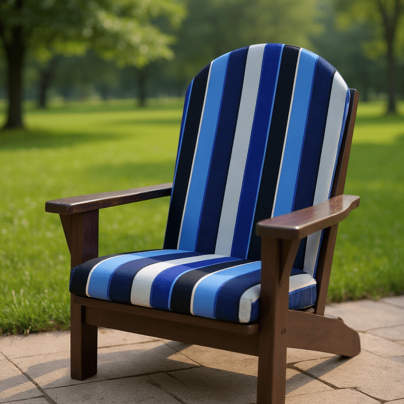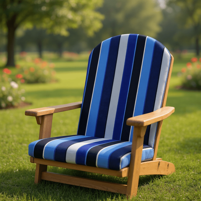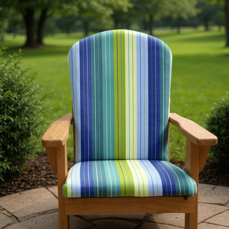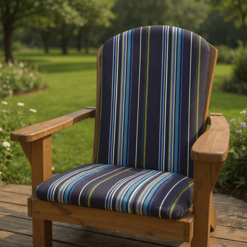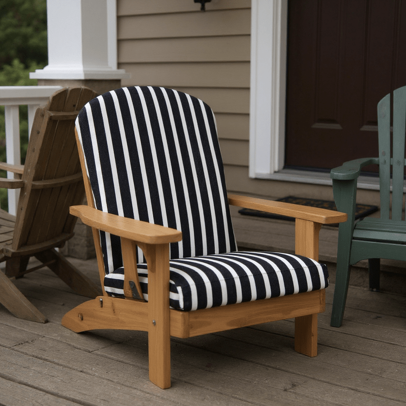 SIZE SPECIFICATIONS:Our one-piece foam cushion measures 48” x 20” x 2” and fits snugly to the back of your Adirondack or rocking chair. The back is 20" W x 30" H x 2” thick and the seat is 20" W x 18” D x 2” thick.