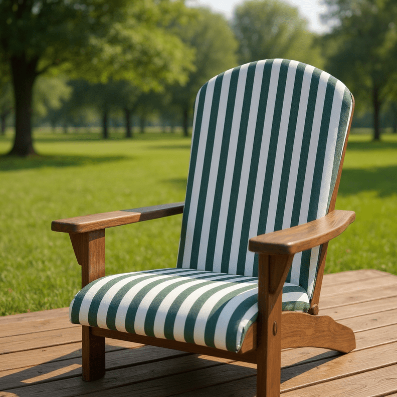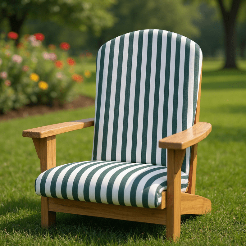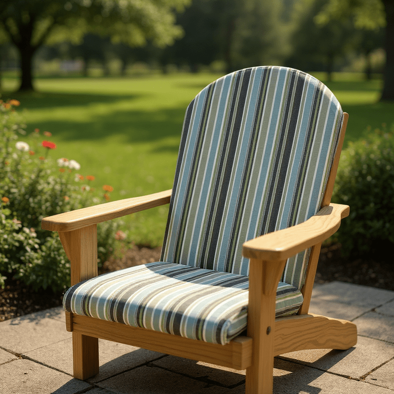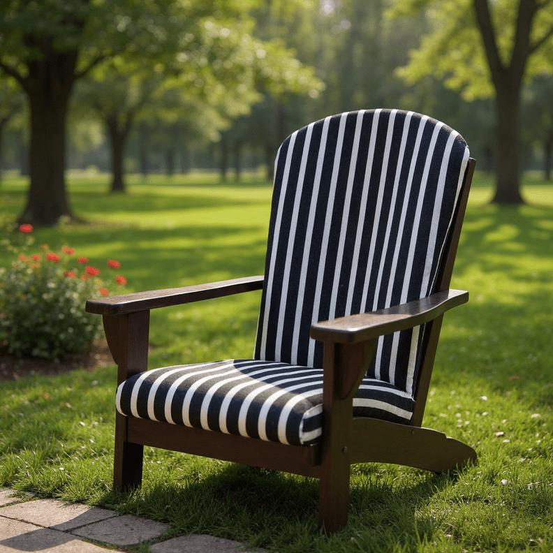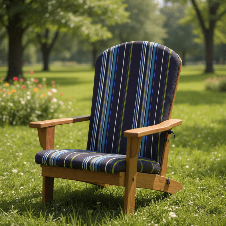 SIZE SPECIFICATIONS:Our one-piece foam cushion measures 48” x 20” x 2” and fits snugly to the back of your Adirondack or rocking chair. The back is 20" W x 30" H x 2” thick and the seat is 20" W x 18” D x 2” thick.