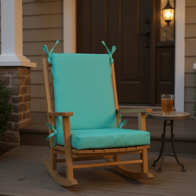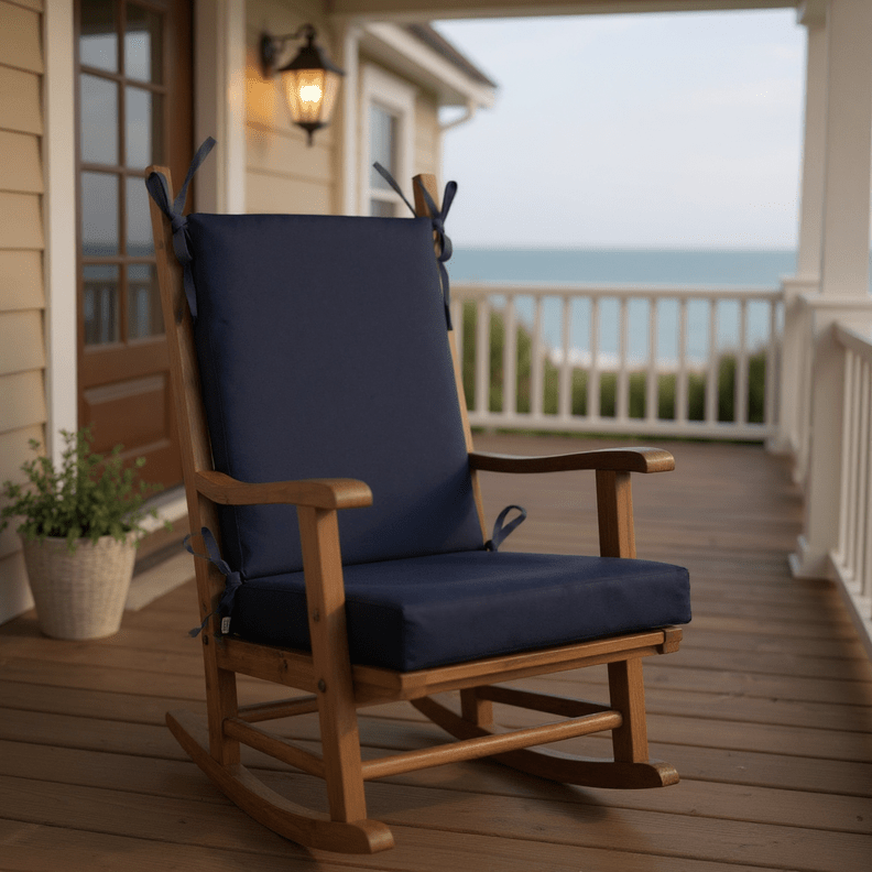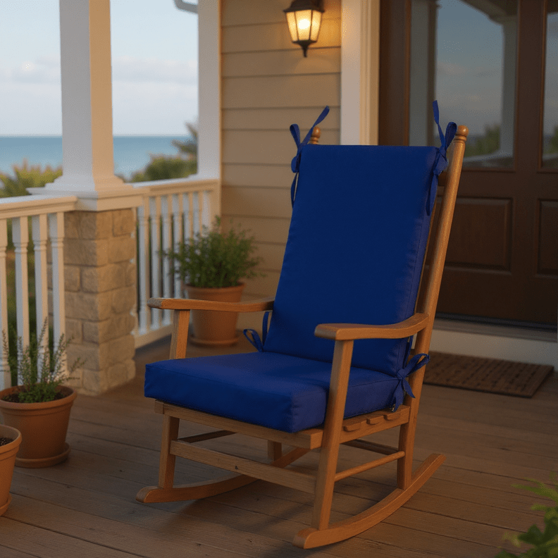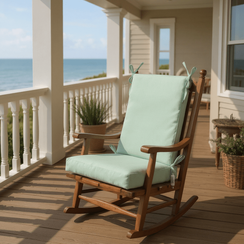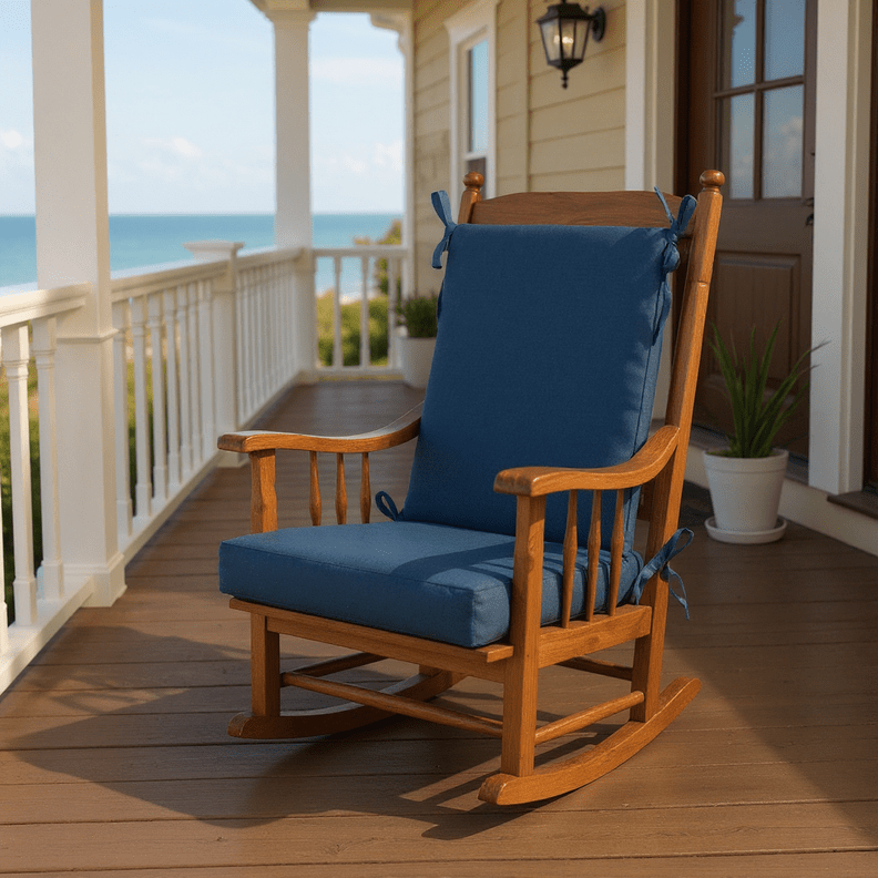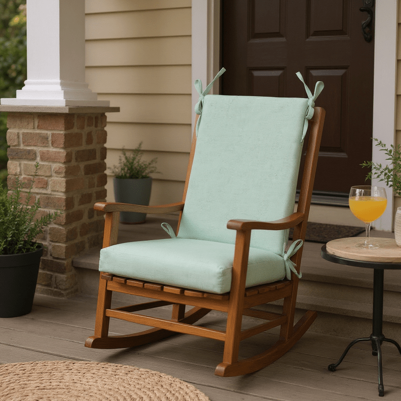 LASTING DESIGN: This rocking chair cushion is perfect for refreshing your porch or patio and can be used either indoors or outdoors. This comes as two separate pieces, one back cushion with matching ties and one seat cushion with matching ties.