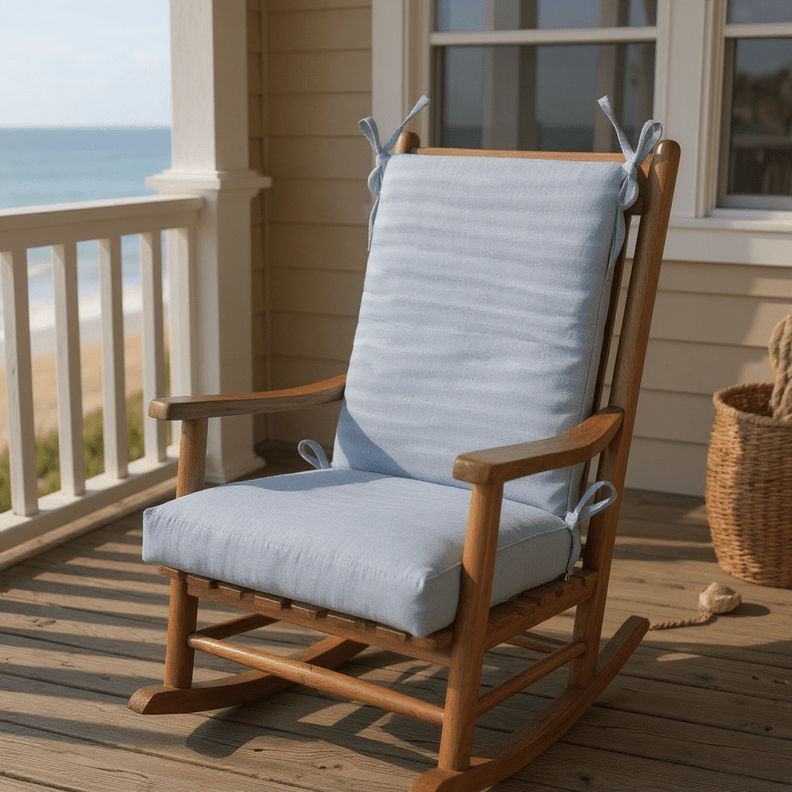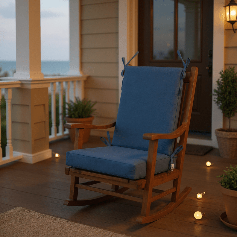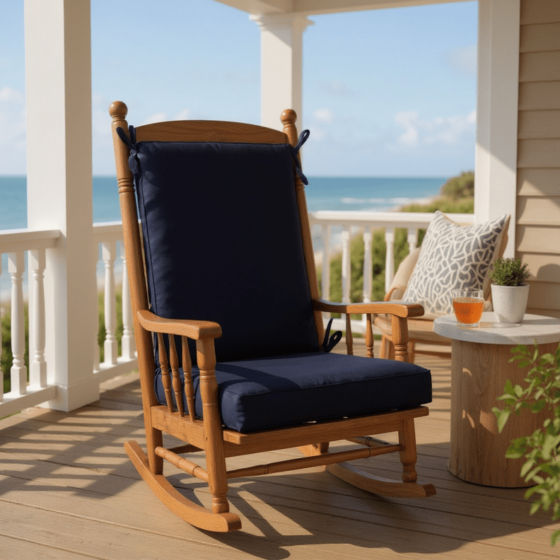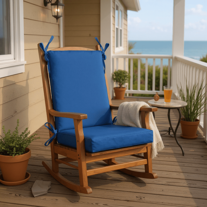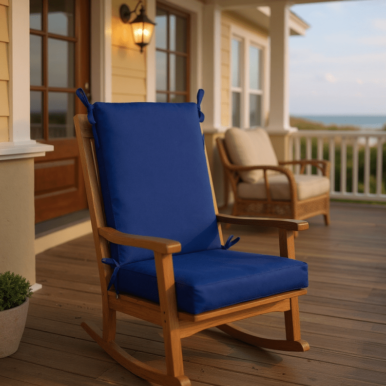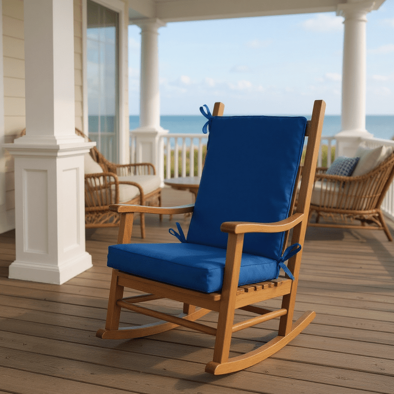 LASTING DESIGN: This rocking chair cushion is perfect for refreshing your porch or patio and can be used either indoors or outdoors. This comes as two separate pieces, one back cushion with matching ties and one seat cushion with matching ties.
