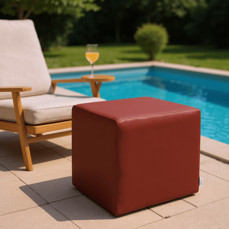 Sunbrella Canvas Reds Square Pouf/Cube - RSH Decor