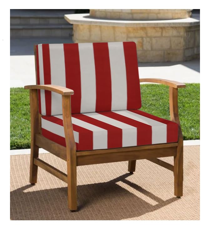 RSH Décor Indoor Outdoor All Weather Club Lounge Chair Deep Seat Cushion 22.5" x 22.5" x 5" with Foam Back Cushion 22.5" x 22.5" x 5", (Red & White Stripe)