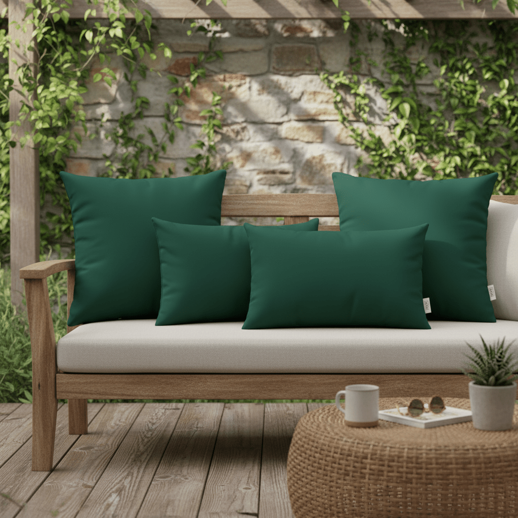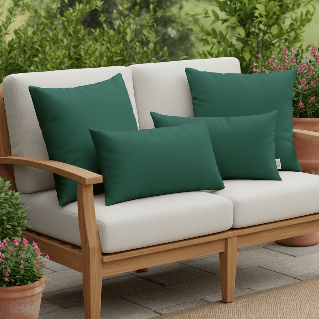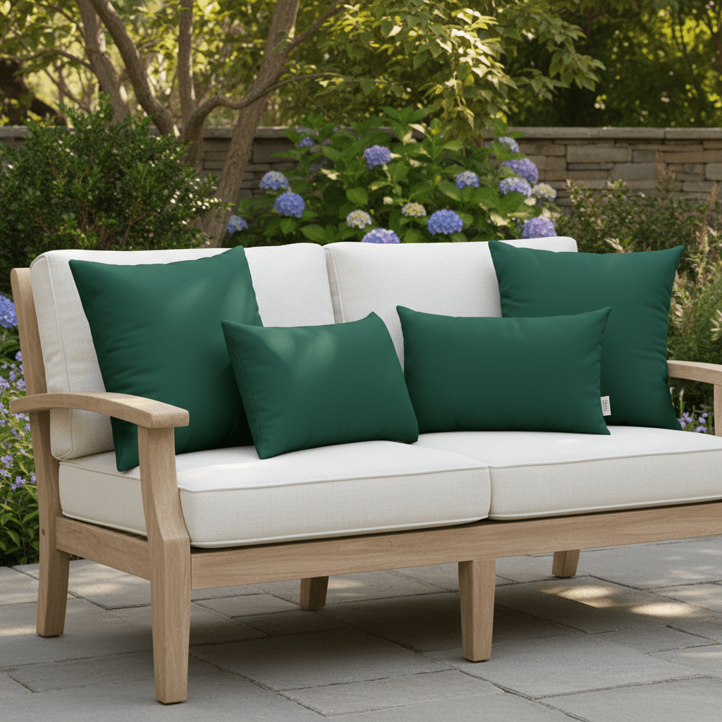 RSH DECOR: Lumbar & Square Throw Pillows Set of 4 | 20" x 12" & 20" x 20" | All-Weather Spun Fabric | Water and Fade-Resistant | Outdoor Accent Pillows for Patio Furniture | Canvas Forest Green