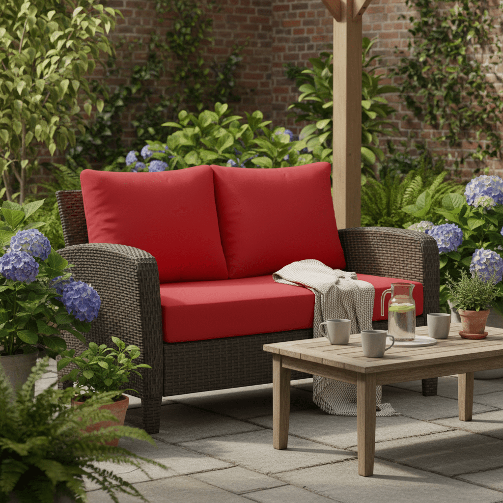 LASTING DESIGN: This deep seating set consists of separate foam-filled seat and back cushions. The zipper-covered bottom cushion contains a 5” thick poly foam insert and the back cushion contains hypoallergenic hospitality-grade fiberfill to provide support and comfort. Cushions are reversible for extended use.