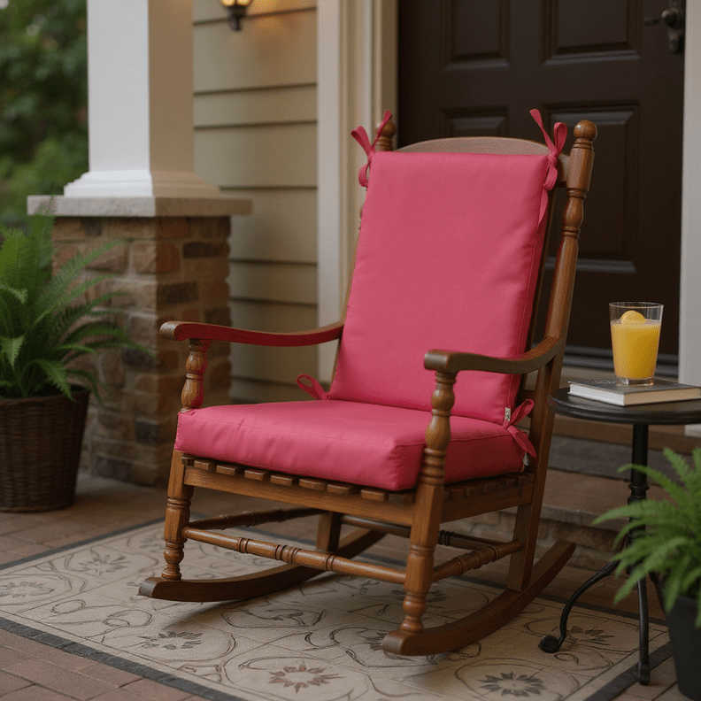 LASTING DESIGN: This rocking chair cushion is perfect for refreshing your porch or patio and can be used either indoors or outdoors. This comes as two separate pieces, one back cushion with matching ties and one seat cushion with matching ties.