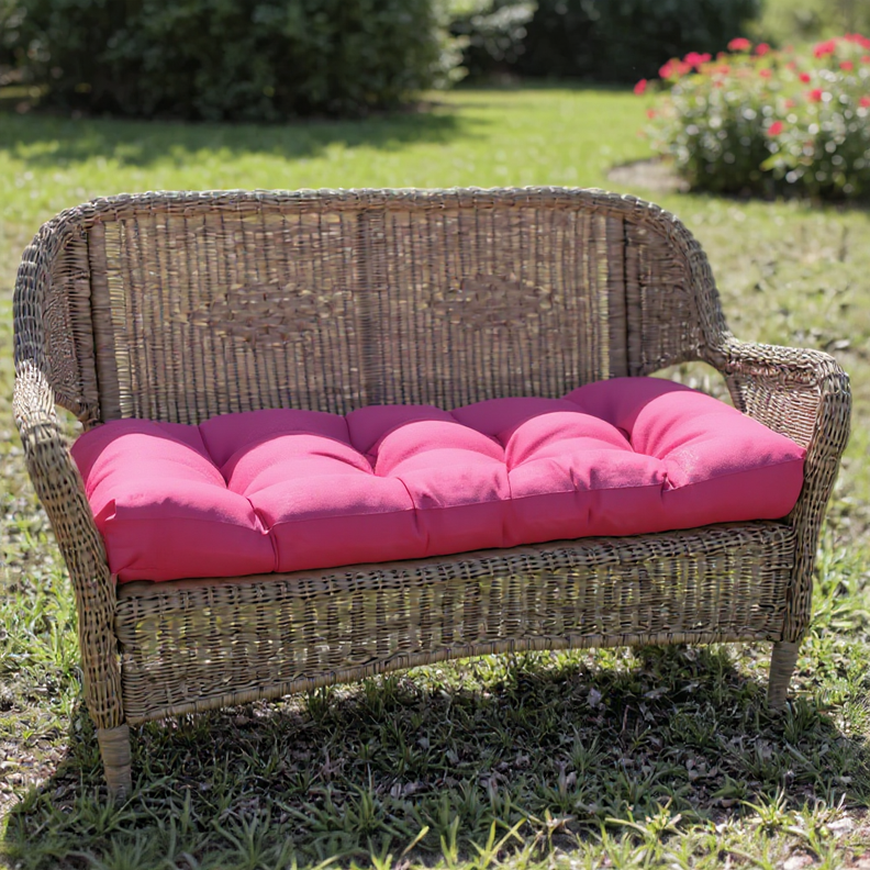 Sunbrella Canvas Hot Pink Tufted Wicker Loveseat Cushion - RSH Decor