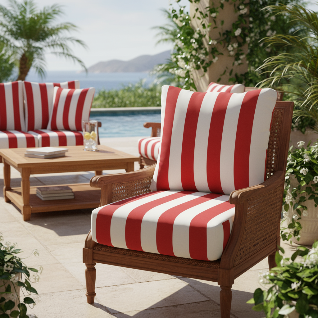 Red and White Stripe Club Lounge Chair Deep Seat Cushion