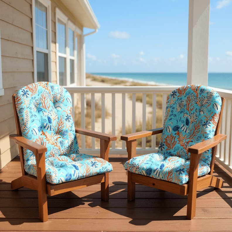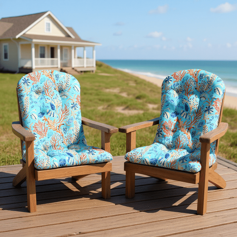 Set of 2 Indoor/Outdoor Decorative Tufted Ocean Life Adirondack Cushio