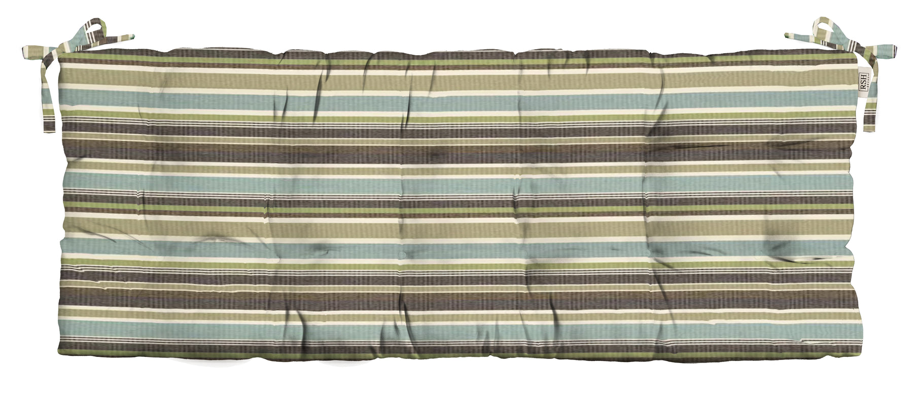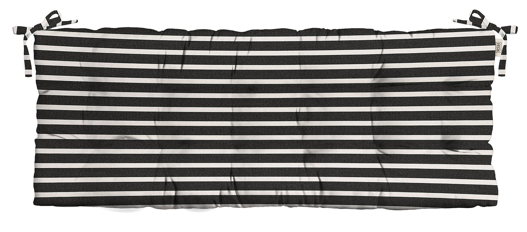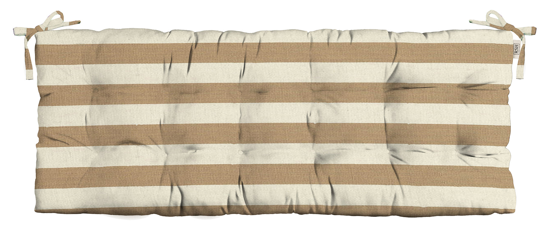 Sunbrella Neutral Stripes Tufted Bench Cushion with Ties - RSH Decor